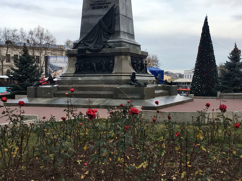 На Приморском бульваре перед зданием драмтеатра им. Луначарского цветут флоксы, на площади Нахимова - розы, а на проспекте Нахимова - хризантемы и настурции. Пробившиеся первоцветы уже увяли и не попадаются на глаза, потому что с каждым днем температура наружного воздуха становится все ниже.