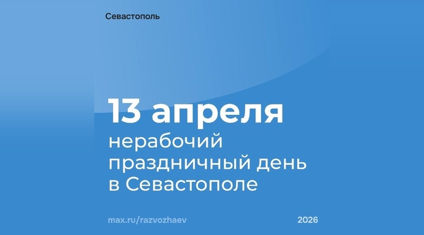 Губернатор Севастополя Михаил Развожаев сообщил, что понедельник, 13 апреля, будет объявлен в городе нерабочим праздничным днем в связи с предстоящим празднованием Пасхи.