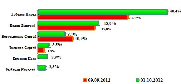 Изменились и рейтинги кандидатов-мажоритарщиков. У Павла Лебедев почти 13-ти процентный рост. Сейчас его рейтинг составляет – 40,4%. Дмитрий Белик сумел повысить рейтинг лишь на 1 процент. Сегодняшний показатель – 18,9%. У коммуниста Сергея Богатыренко рейтинг снизился более, чем на 2 процента. Он составляет – 8,4 %. Процентные показатели остальных кандидатов находятся в рамках статистической погрешности.