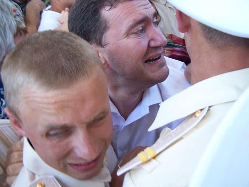После таких важных заявлений хочется сразу, окончательно, всецело и безоговорочно поверить. Поверить в то, что депутат горсовета Д. Белик с таким выражением лица (см. на фото, сделанном 5 июля на Графской пристани) вовсе не штурмовал шеренгу матросов, а героически предотвращал приход «военной хунты» к власти, обороняя своих избирателей от посягательств «десятка вооруженных военнослужащих» (очередная цитата из выступления В. Колесниченко).