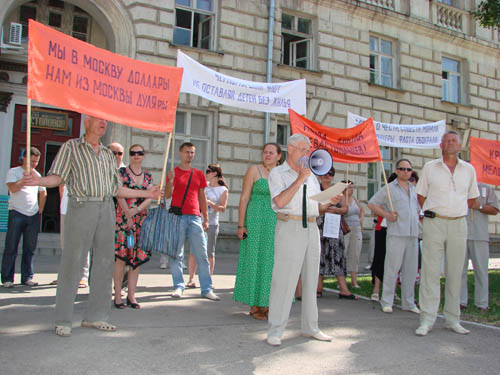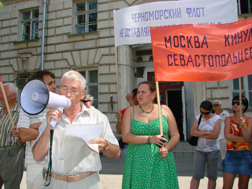 ─ Нас не пускают в ДОФ: говорят, военный объект. Как же так? Ведь он всегда был открыт для горожан ─ в нем проводятся концерты, разные кружки. И вот вдруг, в одно мгновенье, ДОФ стал военным объектом, ─ возмущена одна из застройщиц Наталья Капинос. ─ Это уловка, чтобы не ставить адмиралов, празднующих День России, в неловкое положение. Ведь нас обманули на сотни тысяч долларов. И при этом у командования ЧФ нет совести выйти к народу. Когда же мы приходим, нас встречают майоры; сначала оттесняют, не дают войти в ДОФ, а потом смеются в глаза. У этих ─ российских ─ офицеров просто нет совести. Украину обвиняют в неуплате за газ: так ведь оплатили вовремя. Пусть теперь они с нами рассчитаются ─ жилье за наши деньги вовремя сдадут!