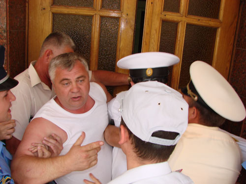 Все попытки возмущенных севастопольцев войти в холл ДОФа были пресечены активными действиями военнослужащих, буквально силой оттеснивших гражданских людей от входной двери здания. Позже, на подмогу дежурной службе подоспели морские пехотинцы. Представители МВД Украины в Севастополе, пытаясь, видимо, разрядить ситуацию, оттягивали протестующих за руки. Громкая словесная перепалка длилась около четверти часа. Обманутые пайщики сетовали на то, что уже два года не могут достучаться ни до высших чинов ЧФ, ни до руководства Минобороны России.