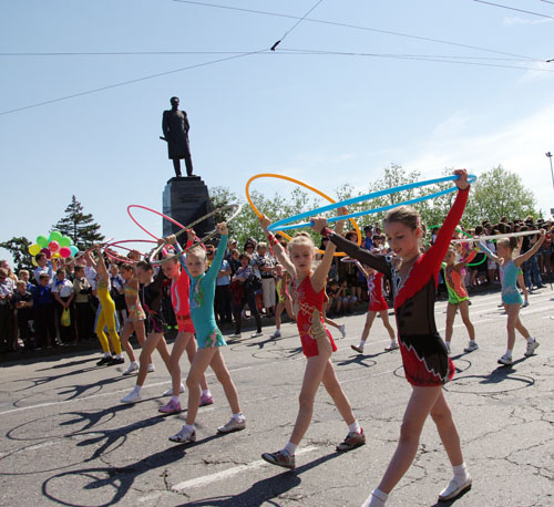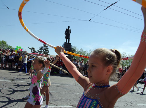 А дальше был праздник. Взрослые и дети аплодировали участникам парада, который, порой, становился карнавалом или же, словно по мановению волшебной палочки, превращался в спортивную арену. Впрочем, к чему слова, когда это яркое зрелище запечатлено в фотографиях нашего фотокорреспондента. Наслаждайтесь. И – с праздником детства!
