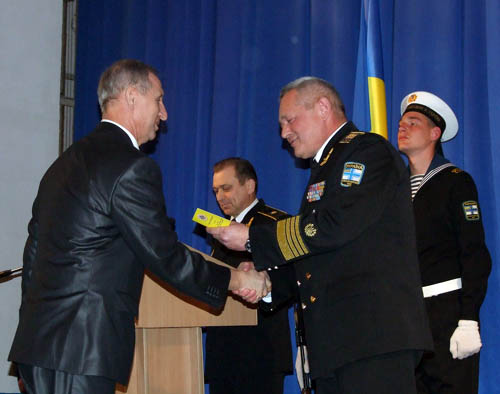 «Моя мечта – дождаться спуска на воду нового украинского корвета и выйти на нем в море» - сказал с трибуны перед участниками собрания вице-адмирал в отставке Николай Клитный, в прежние годы начальник штаба тогда еще неразделенного Черноморского флота. Старейшему участнику торжества выйти на трибуну помог один из офицеров. Искренним словам адмирала, сказанным на русском языке, искренне аплодировали все присутствующие, в том числе два бывших и один действующий командующий ВМС Украины.