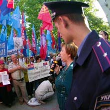 Но люди с депутатскими значками на пиджаках почему-то стоят в стороне, и выполнять свои обязанности не торопятся. Зато протестовать против повышения тарифов (и, получается, выступать за развал ЖКХ!) политические силы, представленные в представительном органе города, всегда готовы, что и продемонстрировал сегодняшний утренний пикет у стен госадминистрации. Люди с флагами партии регионов, Русского блока, блока Наталии Витренко энергично наезжали на «чрезвычайщика» Куницына, который, собственно, выполнил обязанности депутатов.
