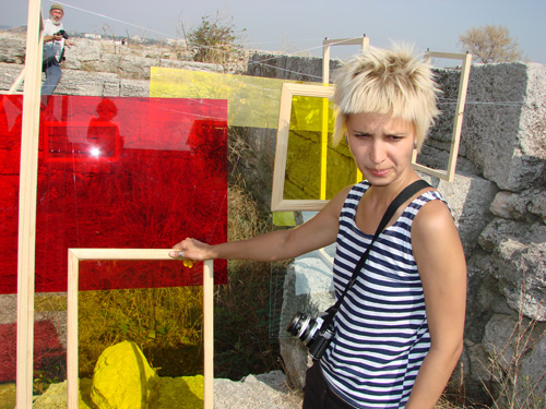 Кто вот точно удивил на Херсонесе, так это архитектор Анастасия Панасюк из Ростова-на-Дону. Ее проект «Композиция. Свет» привлек всеобщее внимание: зрители смотрели не только на развешанные на лесках цветные стекла, но и на цветные тени, что падали на древние камни. Тени и блики, по мнению Насти, это единственно корректные способы инсталляции в таком историческом памятнике, как Национальный заповедник «Херсонес Таврический».