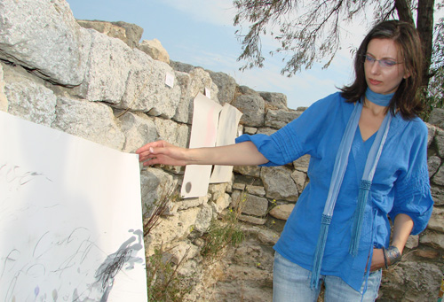 Выпускница факультета изобразительного искусства Высшей школы Ганновера Хелена Гайкалова, что приехала на фестиваль из Германии, явно знакома с хай-теком, но видно, что в творчестве он ей чужд. Легкую абстракцию в виде акварельных разводов на ватманском листе Хелена лаконично комментирует: «Таким я увидела Херсонес…».