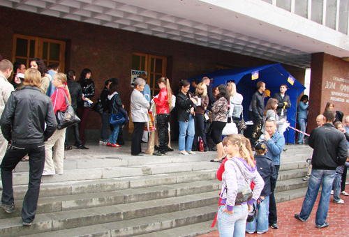 Сегодня утром у входа в Дом офицеров Черноморского флота Российской федерации было весьма оживленно: в Севастополь приехал проект «Україна має талант-2». Цель однодневной работы творческой группы телевизионного проекта – провести кастинг для желающих участвовать в ТВ-шоу.