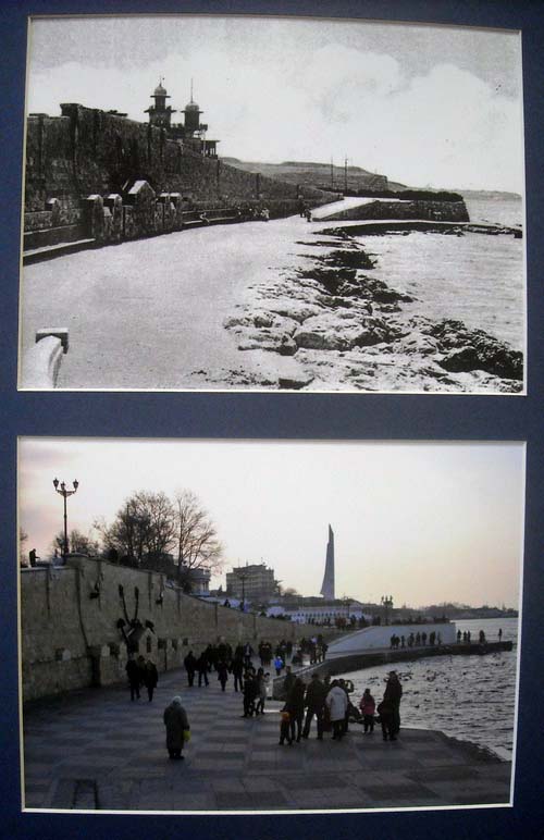 Сегодня в выставочном зале около пятидесяти работ. Здесь город и его окрестности, Северная сторона, Балаклава, главные улицы и площади, и те места, которых уже не узнать. Есть даже три или четыре снимка, интервал, между которыми 150 лет. Автор говорит, что главное свойство всех фотографий – прямое попадание.