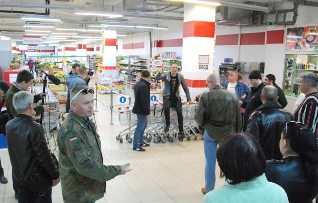 «Благодарные зрители» не были обмануты в своих ожиданиях. Демьян торжественным маршем спустился на цокольный этаж «Апельсина», то и дело выкрикивая: «Свободу Севастополю!», «Севастополь – Крым – Россия!», «Руки прочь от нашего города!» и так далее. Торговые бокс (которые, к слову, вовсе не были опечатаны) молодой человек открыл. Правда, к работе так и не приступил. Нашлись дела поважнее – бизнесмен начал требовать немедленной аудиенции с директором местного филиала «Эко-маркета». Мол, нужно расставить все точки над «и». Руководителя на месте не оказалось. И тут началось шоу. Предприниматель заблокировал вход в торговый зал, а его соратники перекрыли выходы. «Никто сюда не войдет, пока я не поговорю с директором!», - выдвинул ультиматум владелец галантерейной лавочки.