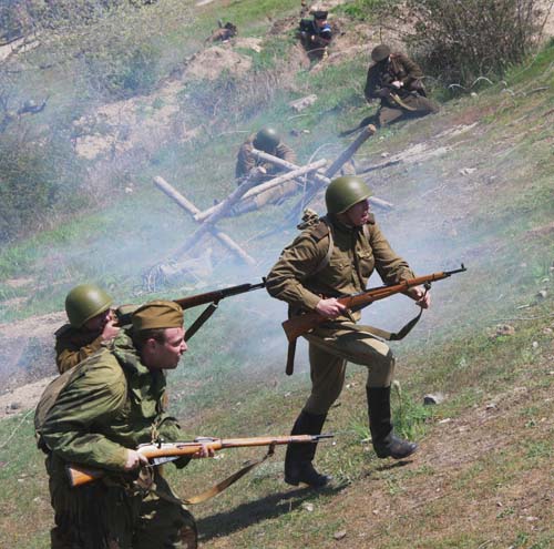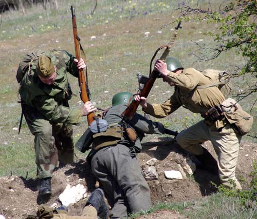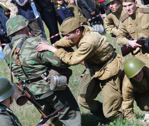 Сегодня в предместье Балаклавы в честь 65-летия освобождения города от немецко-фашистских захватчиков состоялась реконструкция боя за Балаклаву 18 апреля 1944 года, сообщает корреспондент «Нового Севастополя». В отчаянной схватке с применением пиротехники с немецкой и советской стороны приняли участие в общей сложности 120 человек униформистов.