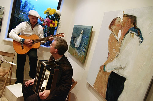 Нестандартности и некого эмоционального колорита выставке добавил веселый «музыкально-флотский пролог» к открытию экспозиции в исполнении дуэта местных художников под руководством заместителя председателя правления СГО Национального союза художников Украины Игоря Шипилина. Строки «На побывку едет молодой моряк, грудь его в медалях, ленты в якорях…» подпевал весь, битком набитый, выставочный зал галереи…