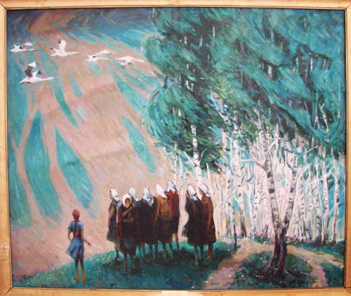 Искусствовед обратила внимание, что хотя на выставке и нет многофигурных батальных полотен, все же некоторые – «обожженные» войной – живописцы спустя время, вновь ворошат военные воспоминания.