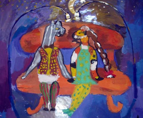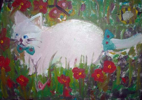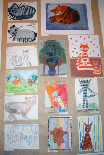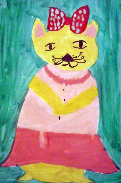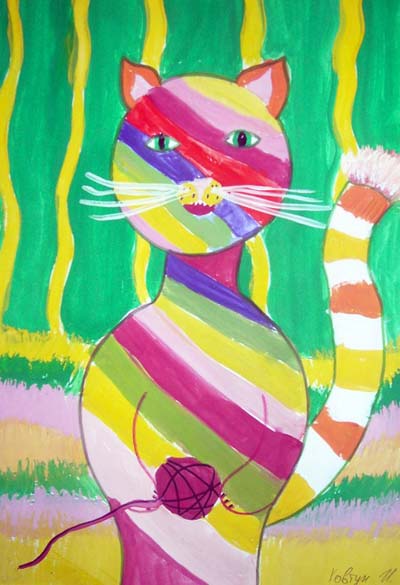 Десятилетняя Саша Тельнова сделала работу по воспоминаниям о своём коте Коленьке. С подругой кошкой.