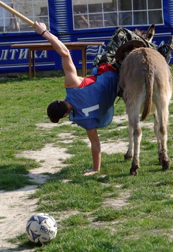 В селе Залесное Бахчисарайского района в день открытия "Музея осла" состоялся турнир по поло на ослах. Как и водится в таких состязаниях, победила дружба. А вообще же, турнир по "ослиному поло" на ферме проводится в третий раз и вызывает большой интерес у местных жителей и туристов. Фотокорреспондент "Нового Севастополя" побывал на этих соревнованиях и предлагает вам, уважаемые читатели, свой взгляд на него.