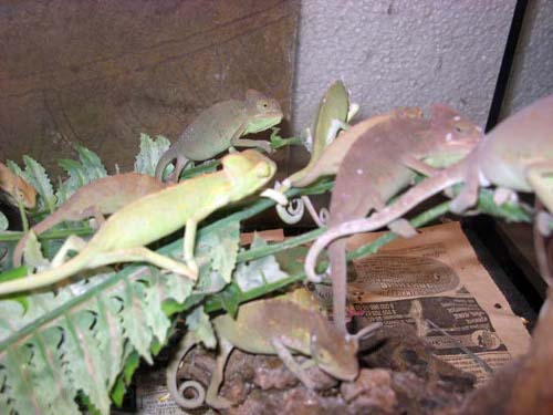 Надо сказать, что парочку йеменских хамелеонов Трофимовы вырастили сызмальства. Причем, не все было гладко. Было время они хандрили. Причем они быстро теряют в весе, усыхают на глазах. Но опыт, терпение, хороший уход и забота сделали свое дело. Йеменские хамелеоны не только стали взрослыми, но и дважды дали приплод. Это показатель их благополучия. Значит, все делалось верно. И животным созданы комфортные условия.