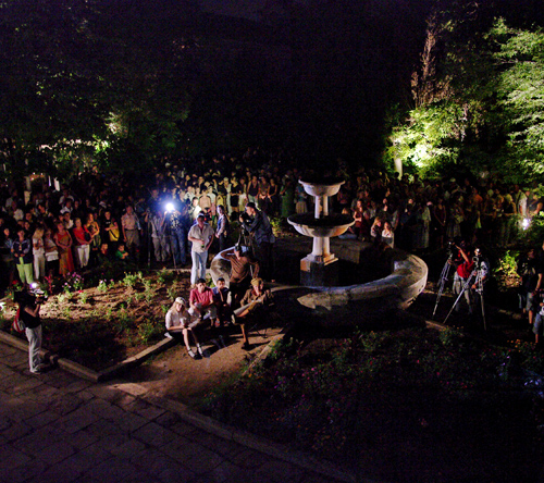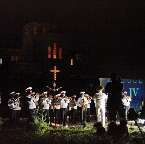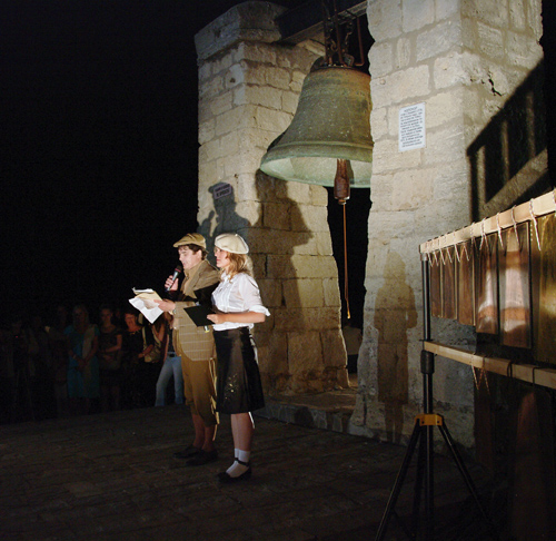 …. От входа и до самого Херсонесского колокола—места официального открытия фестиваля—около 3 тысяч выставленных по обе стороны дорожки свеч. Многие еще заворожено шествуют меж древних развалин Херсонеса (многие впервые здесь ночью!), а у колокола к микрофону для приветствия приглашается звезда первой величины отечественного кино, постоянная почетная гостья Севастопольского кинофестиваля, народная артистка Советского Союза Ада Роговцева.