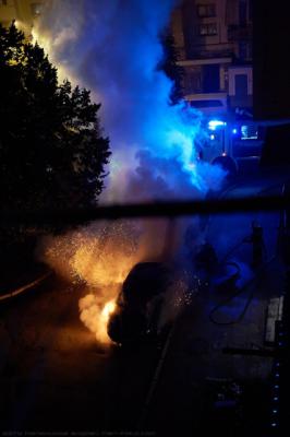 Предположительно, возгорание началось в районе топливного бака. К моменту прибытия пожарных машина была полностью охвачена пламенем: от моторного отделения до багажника. Площадь пожара составила 6 квадратных метров. Для тушения автомобиля спасатели подали специальный ствол высокого давления.