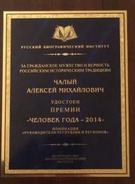 10 декабря 2014 г. в номинации «Руководители регионов и республик» за гражданское мужество и верность российским историческим традициям лауреатом Международной премии "Человек года" стал председатель Законодательного собрания Севастополя, «народный мэр» Алексей Чалый, сообщает отдел по связям со СМИ Законодательного собрания.