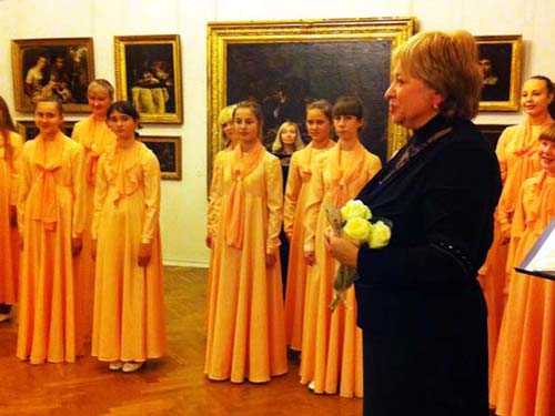 На снимке: Марина Федотова и образцовый хор "Жаворонок" в Художественном музее им. Крошицкого