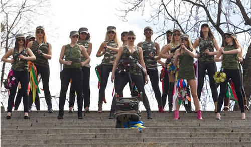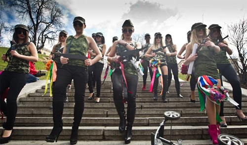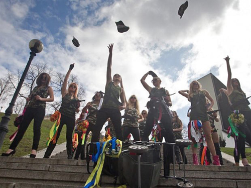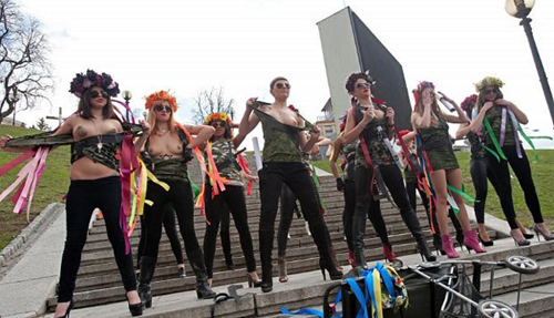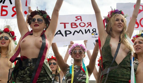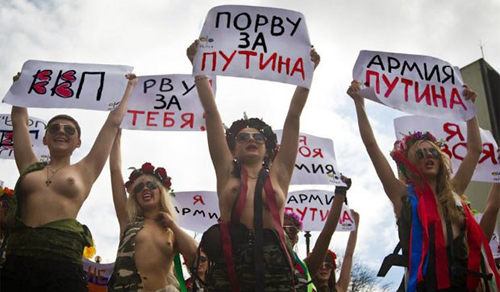 В четверг утром на Майдане Незалежности в Киеве в знак солидарности со своими российскими подругами из «Армии Путина» активистки движения FEMEN устроили очередную топлесс-акцию.