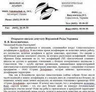 В нарушение законодательства Украины, они выдали доверенности одесским предприятиям ООО «Нерум» и ООО «Прикосновение природы» на пользование частной собственностью (!) предприятия «Биологическая станция»! «Под арест» попали, в частности, недавно приобретенные нами в России белые киты, а также черноморские дельфины-афалины и северные морские котики, составляющие зоологическую коллекцию, зарегистрированную в Минэкологии Украины.