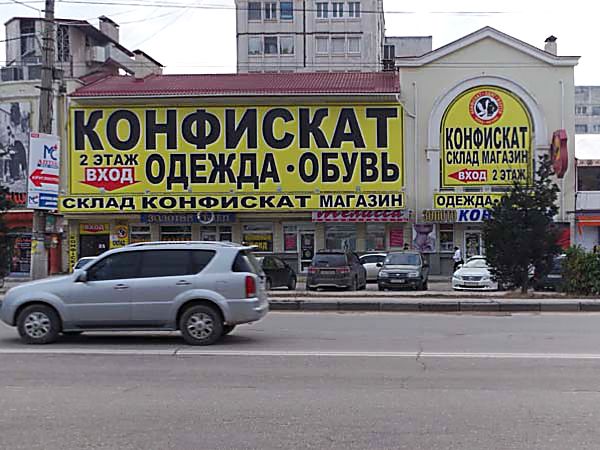 Корреспондент «НС» объехал лишь часть Гагаринского района города и заметил, что «вывесками» магазина «Конфискат» полностью закрыт весь второй этаж торгового дома «Стрелецкий» на площади имени 50-летия СССР, а также второй этаж магазина напротив Юмашевского рынка.