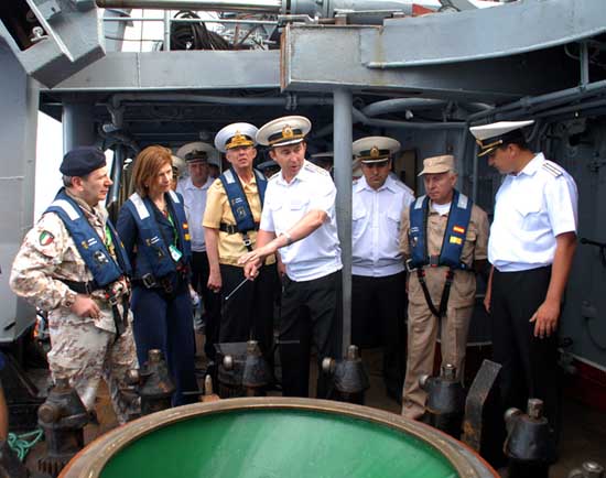 На судне высоких гостей в соответствии с протоколом встречал почётный караул. Генералы и адмиралы осмотрели российское спасательное судно, которое в период их визита работало совместно с лежащей на грунте подводной лодкой ВМС Испании «Галерна». К выходному люку на корпусе субмарины был пристыкован водолазный колокол, после чего в него перешли и были подняты на СС «Эпрон» несколько испанских подводников. Весь ход операции транслировался на видеомониторах посредством телеуправляемого подводного аппарата «Тайгер», спущенного с судна. Кроме того российские спасатели продемонстрировали образцы водолазного снаряжения и работу водолазов в нормобарическом скафандре, предназначенном для глубоководных погружений.