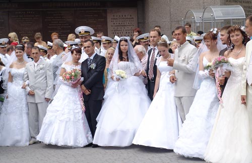 14 июня на площади Нахимова у «Мемориальной стены в честь героической обороны Севастополя 1941-1942 г.г.» город чествовал пятнадцать семейных пар образовавших в этот день новые семьи и две семейные пары севастопольцев, отмечающих в июне «золотой юбилей» - пятьдесят лет совместной жизни.