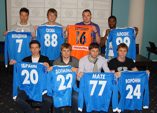 Далее, представляя игроков, президент ФК охарактеризовал каждого из них: «Александр Младенов – до последнего времени игрок болгарского чемпионата, «золотая левая нога», левый фланг, полузащита – это основная его позиция. Олег Допилка – играл в молодежной сборной Украины, воспитанник динамовской школы, правый защитник, хорошо зашел, надеюсь, будет уверенно играть. Сергей Веремко – до недавнего времени вратарь белорусского БАТЭ. Только пришел к нам на помощь и сразу подстегнул всех вратарей: все вратари очень активно тренируются. Майкл Алозие до последнего времени играл за «Металлург», Запорожье. Ранее играл в «Волыни». Там показал себя состоявшимся футболистом, который может забивать голы любой команде, в том числе и «Шахтеру». Пришел к нам, чтобы помочь городу и найти свое второе «я».