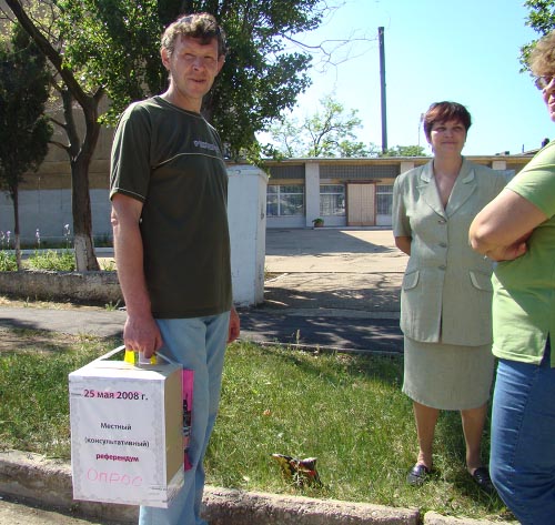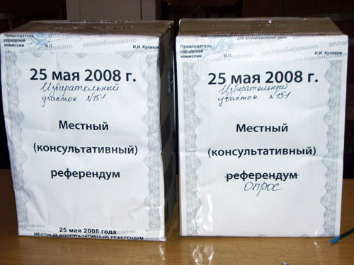 На том же участке на одной самопальной урне слово «референдум» вычеркнули, а на второй то ли забыли, то ли оставили… на всякий случай