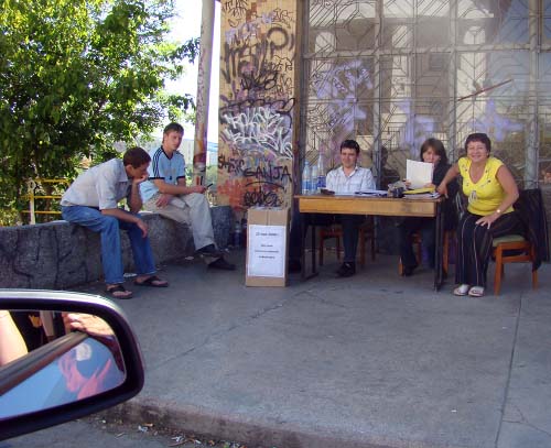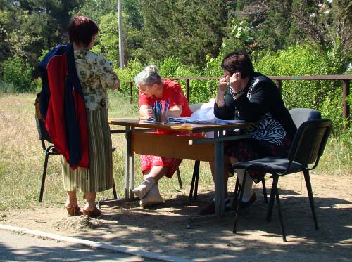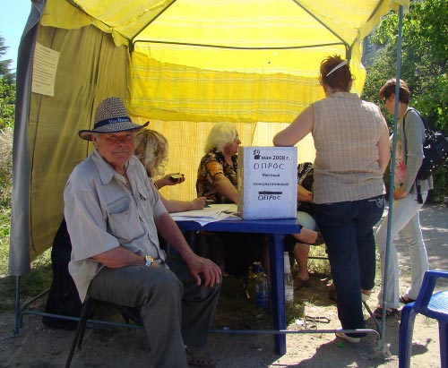 Пожилым дамам, проводящим опрос, наверное, стыдно за такое свое незавидное положение – прячут лица…