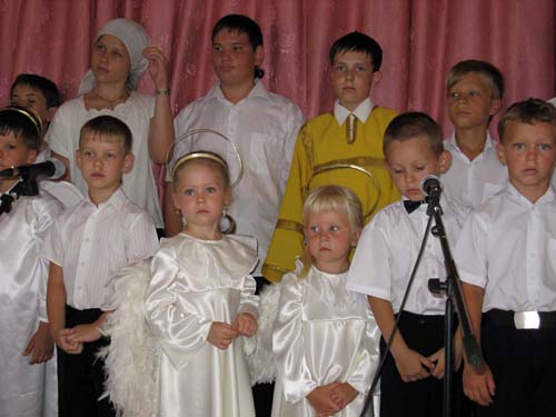 После молебна и награждения прошел крестных ход вокруг храма, а затем все прихожане и гости храма стали свидетелями прекрасного выступления воспитанников воскресной школы, которую подготовили преподаватели этой школы при храме Татьяна Сухова и Елена Фурман. Это были очень трогательные сценки из жизни храма. В конце выступления прозвучали поздравления с юбилеем, а для прихожан во дворе храма был накрыт стол с участием военнослужащих бригады морской пехоты.