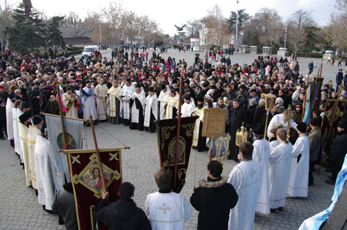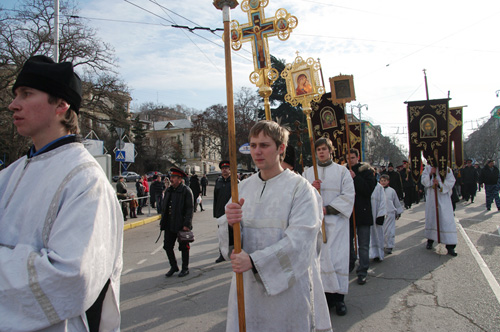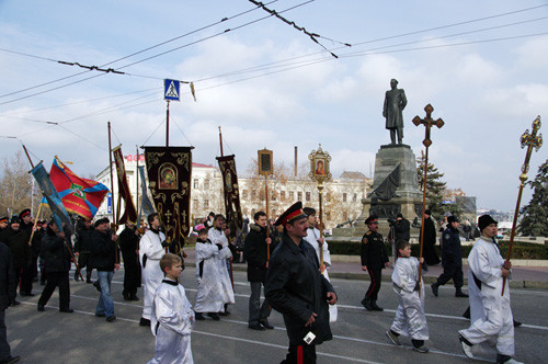 Продолжились торжества крестным ходом от Покровского и Владимирского соборов до площади Нахимова, где праздничный Рождественский молебен провел благочинный Севастопольского округа отец Сергий. По окончании молебна отец Сергий огласил поздравление митрополита Симферопольского и Крымского Лазаря, в котором, частности, говорилось: «Желаю всем в наступившем году неоскудевающей помощи Божией, крепости духовных и телесных сил, стойкости в несении жизненного креста и в трудах на благо святой матери-церкви и нашей державы».