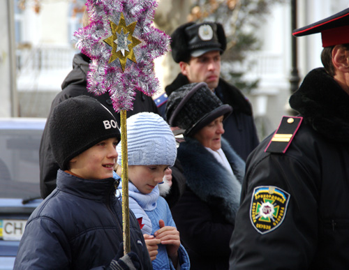 Обращаясь к верующим, первый заместитель председателя городской государственной администрации Владимир Казарин сказал: «Рождественские праздники отличаются ожиданием нового счастья, нового поворота в судьбе, обретения новых ценностей. Я рад, что на ночной службе во Владимирском соборе в Херсонесе было очень большое количество севастопольцев. И сейчас все храмы заполнены горожанами. Традиционный крестный ход собрал большое количество верующих и сочувствующих. Дети – самая главная и важная примета этого праздника. Дети всегда верят в чудо. Сегодня мы все, как никогда, верим в добро, согласие, торжество созидательных сил. Сегодня все православные будут молиться за дарование счастья ближним, процветания стране, за укрепление дружбы между братскими народами Украины и России».