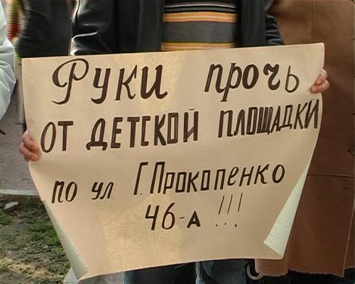 21 января под зданием Апелляционного административного суда Севастополя состоялся митинг, на котором городские активисты отстаивали детскую площадку во дворе дома по улице Галины Прокопенко, 46-А. По словам местных жителей, с 2005 года на их небольшую придомовую площадку посягает житель соседнего дома Алексей Калошин. Идут многочисленные суды.