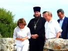 И.о. директора заповедника Лариса Седикова рассказала гостям об истории Херсонеса и собора. Путин и Берлускони осмотрели место крещения князя Владимира Великого, Херсонееский колокол и городище древнегреческого поселения.