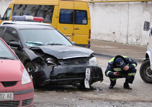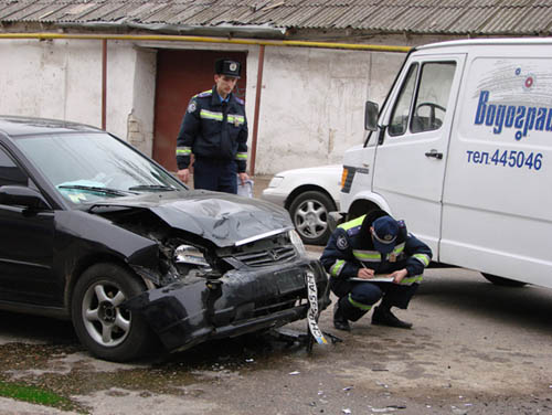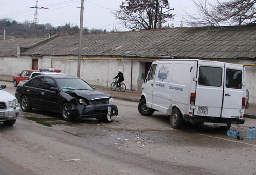 Сегодня, в 9.35 утра, на улице Героев Севастополя произошло дорожно-транспортное происшествие. Легковой автомобиль марки «Хонда» врезался в завершавший разворот грузовой фургон «Мерседес-бенц». ДТП произошло около магазина чистой воды «Водограй», откуда, разгрузившись, и выезжал фирменный фургон. Он завершал маневр и уже почти пересек прерывистую линию, когда в заднюю ось «Мерседеса» на большой скорости вошел капот «Хонды».
