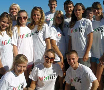 Молодые люди в майках с символикой общественной организации провели утреннюю физическую зарядку на морском берегу в историческом центре Севастополя, чтобы с позитивным тонусом начать новый учебный год. «Новые люди» призвали учащуюся и студенческую молодежь присоединяться к ним.