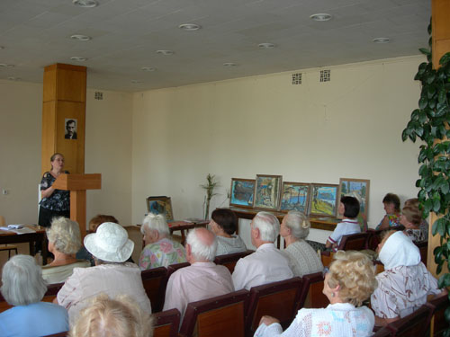В читальном зале центра была представлена экспозиция на гриновскую тему: новые картины члена Национального союза художников Украины Владимира Адеева, книги с произведениями писателя-романтика и о нём, материалы Феодосийского литературно-мемориального музея А.С.Грина.