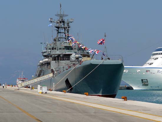 По прибытии командир похода капитан 2 ранга Сергей Звягин и командир БДК капитан 2 ранга Сергей Ларчук по сложившейся традиции нанесли визиты вежливости старшему морскому начальнику военно-морского района Керкира, представителям городских властей, портового корпуса и полиции порта.