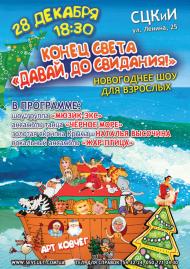 28 декабря в 18.30 творческие коллективы Севастопольского Центра культуры и искусства приглашают всех севастопольцев на новогоднее огонек-шоу «Конец света, давай до свидания!». Феерическое представление, яркие танцевальные и вокальные номера, искрометный юмор артистов и только позитивные эмоции ожидают гостей Центра в этот вечер.